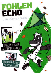 „Jünter’s Welt – der Club“ wurde während der Saison 2005/2006 ursprünglich für Kinder bis 10 Jahren ins Leben gerufen und hat Ende der Saison 2005/2006 knapp 3.000 Mitglieder! Die eigene Club-Zeitung „FOHLENECHO – Sonderheft – Jünter’s Welt“ erscheint halbjährlich – erstmals mit der Oktober-Ausgabe 2006 – für 1,90 EUR bzw. kostenlos für Clubmitglieder! Die Entwicklung der eigenen Club-Zeitung hat schon einige Zeit gedauert und der Erscheinungstermin wurde mehrfach auf Jünter’s Homepage angekündigt und verschoben. Bis zuletzt war auch über den definitiven Titel noch nicht entschieden, wie die Ankündigung auf Jünter’s Homepage noch Ende September 2006 offenbart! Letztendlich hat man sich dann auf den Titel „FOHLENECHO“ geeinigt. |