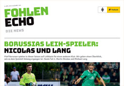 Mit der Zeitung „Der Tag im BORUSSIA-PARK“ – erstmals am 10.09.2008 erschienen – wurde eine echte Lücke geschlossen. Für alle Besucher des Profi-Trainings, der Spiele der Jugendmannschaften, des Fanshops, der Sportsbar, eben alle Besucher des BORUSSIA-PARKS gibt es aktuelle Infos! Neben Beiträgen rund um Borussias Profi-, Amateur- und Jugendmannschaften, gibt’s die Trainigszeiten der Profis, U23 und U19; die Spielzeiten aller Mannschaften bis runter zur U10; die Tagesgerichte der Sportsbar, aktuelle Fanshop-Angebote und vieles mehr! Am 29.04.2018 wurde die Zeitung in „FOHLENECHO – DIE NEWS“ umbenannt.